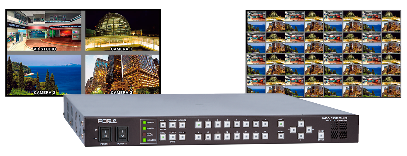 MV-1620HSA是可以在单个或两个显示屏上进行16路混合3G/HD/SD-SD或模拟复合信号监看的紧凑型多画面分割器。也可以通过与其他MV-1620HSA级联实现同时显示64窗口画面。布局编辑软件可自定义窗口布局,还支持音频电平表显示、AFD裁边和其他信息显示等功能。
