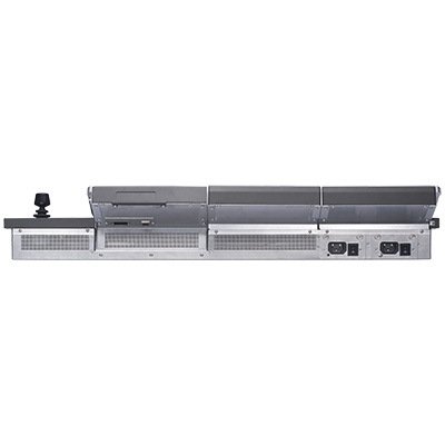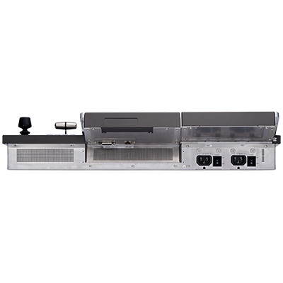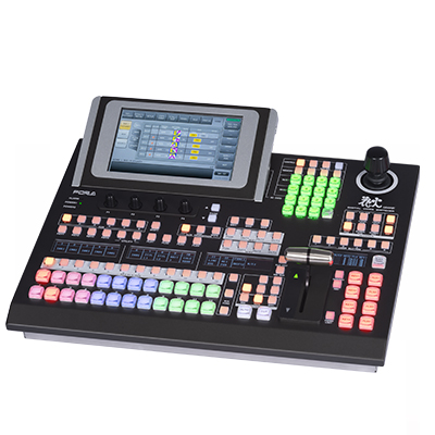 可根据您的需求选择HVS-492ROU、HVS-492OU、HVS-492WOU这三种型号的操作面板。配有自定义RGB发光 按键和OLED源名显示屏,可对输入信号的种类以及按键功能选择不同的亮灯颜色进行区分。操作面板上带有的7 英寸的触屏GUI 可使操作性能提高,使控制更加精准。各种设定皆可通过三轴(XYZ)摇杆、菜单控制旋钮和键盘 直接输入。用户按键分布在操作面板的重要部位,可实现使丰富多彩的自定义设置。通过SD卡可以保存或载入配 置文件和静帧。HVS-1200 配有内置网络服务器,更能实现远程设置、操作和预览。